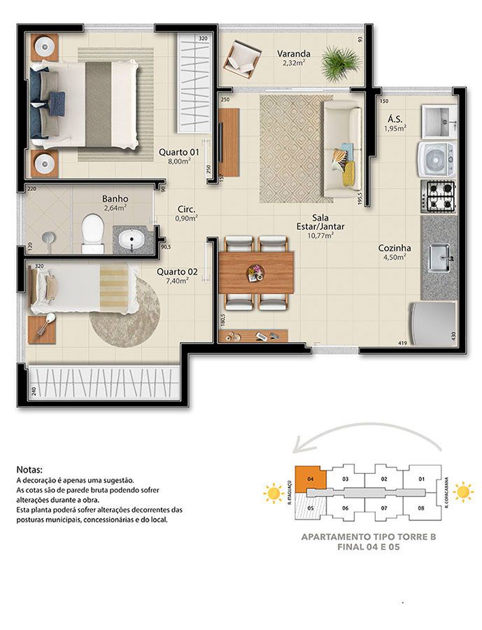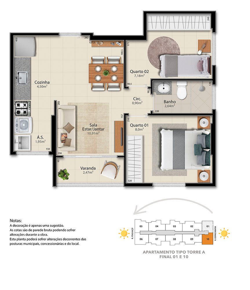 - 2 QUARTOS - 43,88 m² de área privativa;