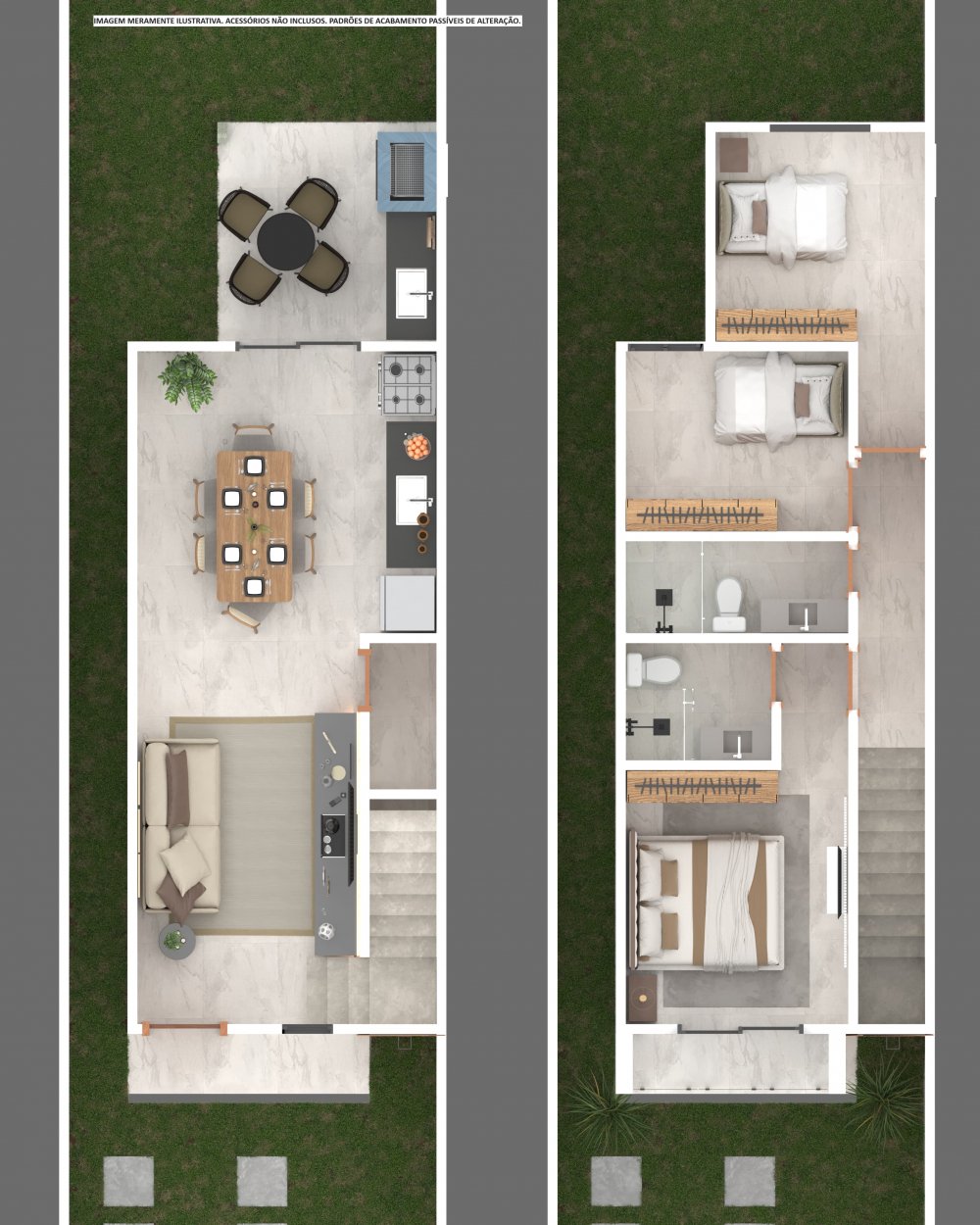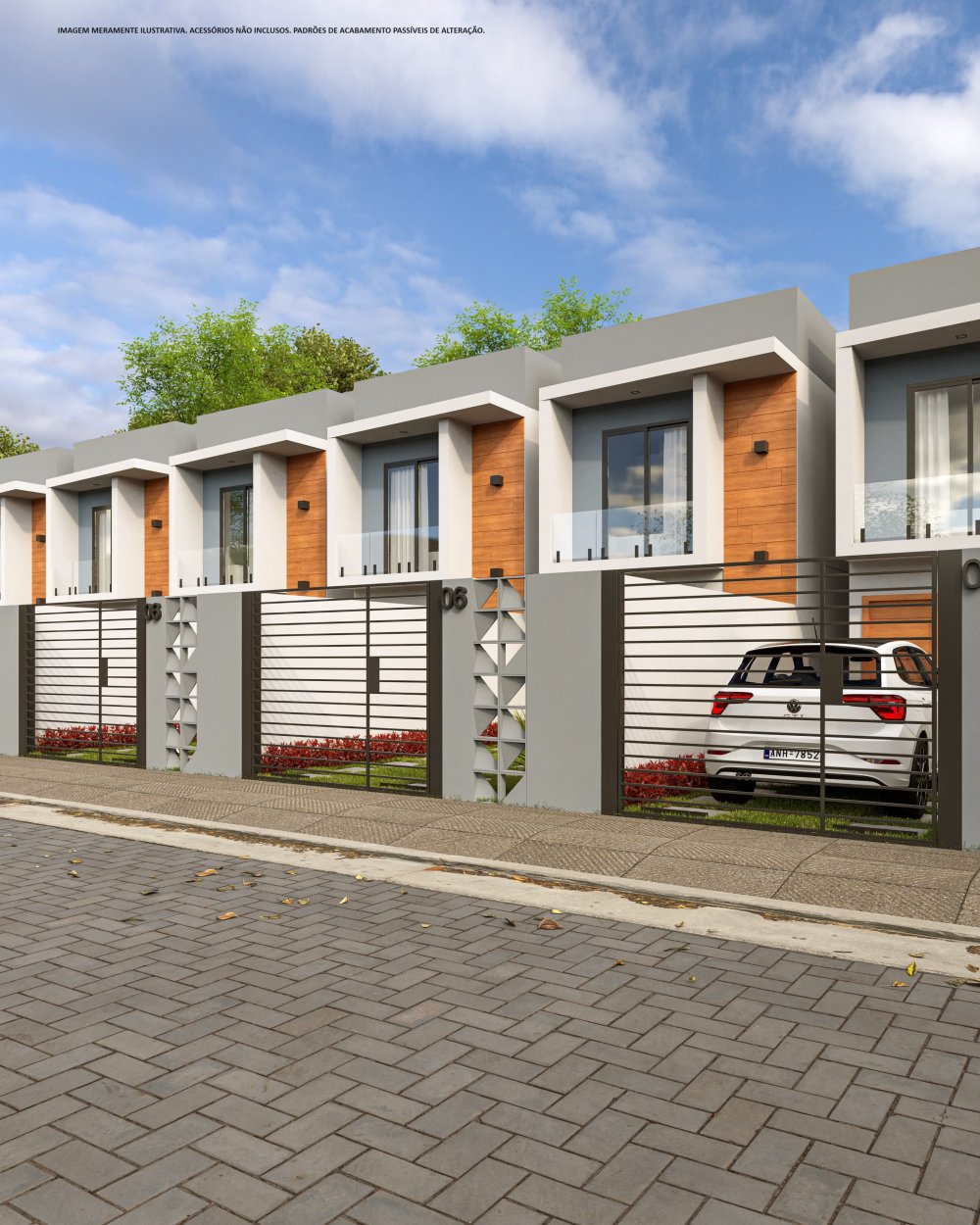 Plantas com 84 m2 de área construída , lote com 113 m2 de área cada casa.